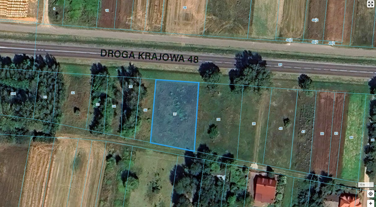 Do sprzedania dwie działki położone odrębnie:1. o powierzchni 0,11 ha – grunt orny (RIVa), działka nr 37. Położona bezpośrednio przy drodze krajowej nr 48, w obrębie wsi Skrawki leży w terenach oznaczonych na planie zagospodarowania przestrzennego symbolem A 20 RP teren upraw polowych bez prawa zabudowy (niewykluczona zmiana charakteru nieruchomości).
